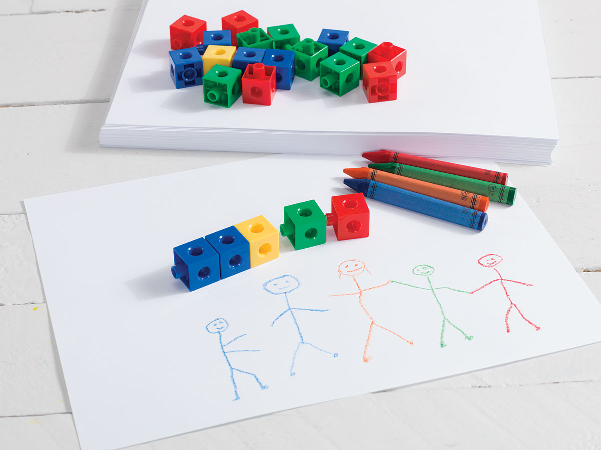 For this fun family-themed activity, you'll need to gather connecting cubes, crayons and paper for each child. Allow the children time to make their drawings but be sure to have plenty of time for counting and using the cubes.